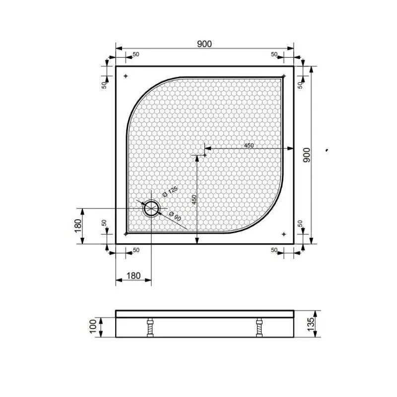 Душевой поддон Эстет Гамма имеет размер 90х90 см, обладает квадратной формой. Поддон предназначен для установки с панелью на ножки.
