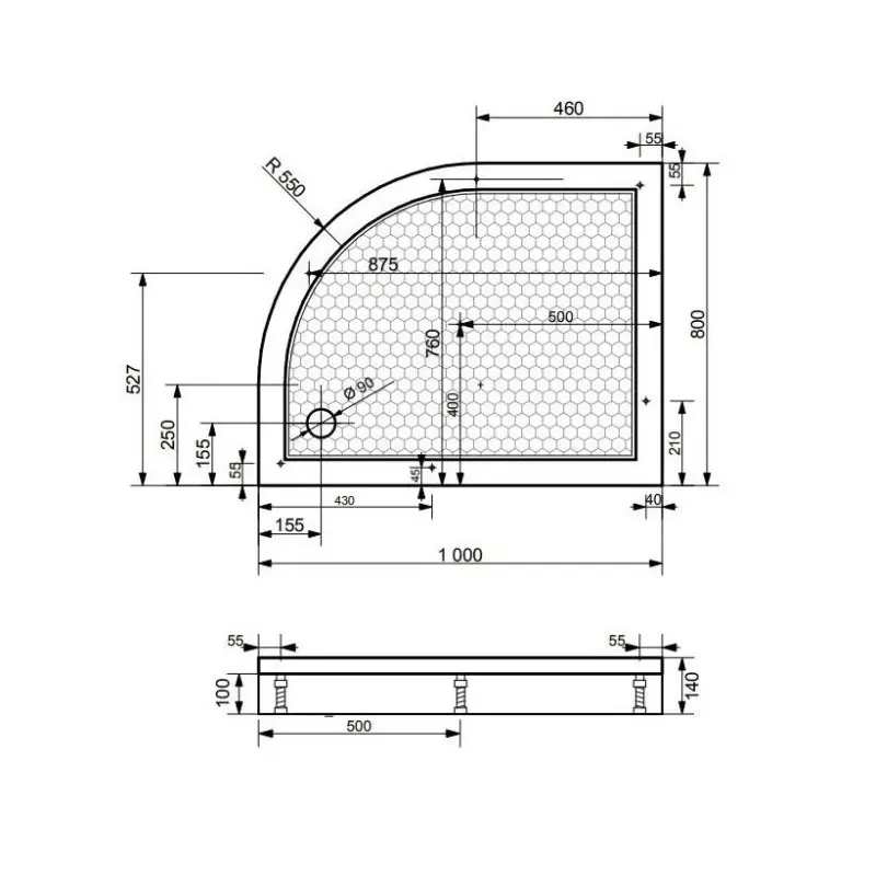 Душевой поддон Эстет Омега имеет размер 100х80 см, обладает асимметричной формой. Поддон предназначен для установки с панелью на ножки.