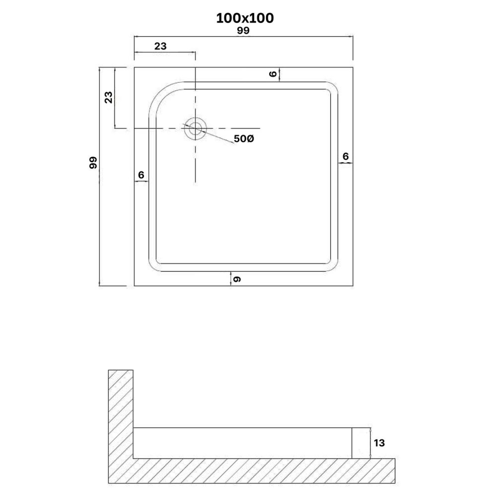 Душевой поддон Niagara Eco имеет размер 100х100 см. Форма — , низкий, цвет поддона квадратная. Для установки на ножки.