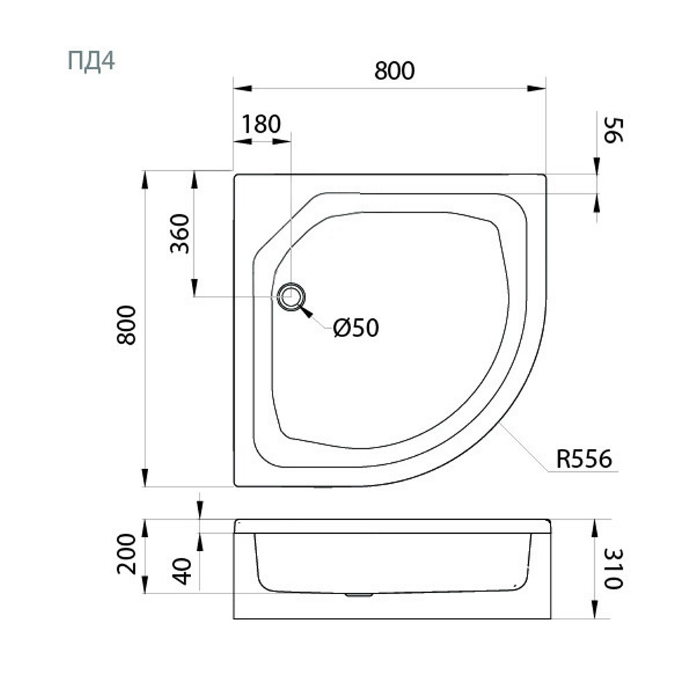 Поддон акриловый Triton ПД20 имеет размер 80х80 см, форма — четверть круга. Поддон предназначен для установки на ножки, а также с передней декоративной панелью.